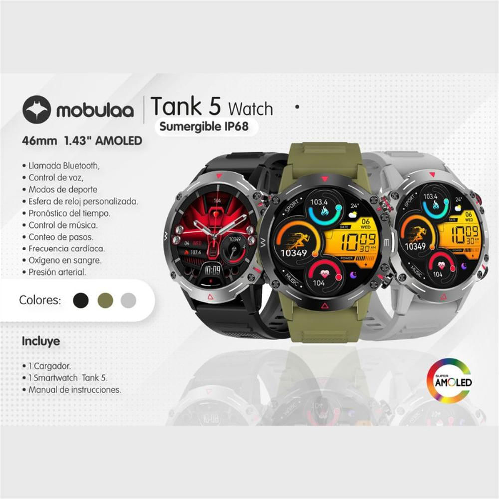 ? El Mobulaa Tank 5 es más que un reloj; es una extensión de tu estilo de vida activo y conectado. ¡Lleva tu experiencia al siguiente nivel con este smartwatch resistente y versátil!